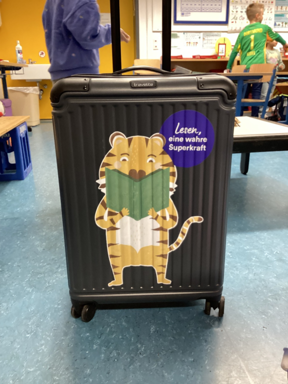 Der „rollende Bücherkoffer“ von Thalia Soest kam in die Schule und brachte jedem Kind ein Buch mit.