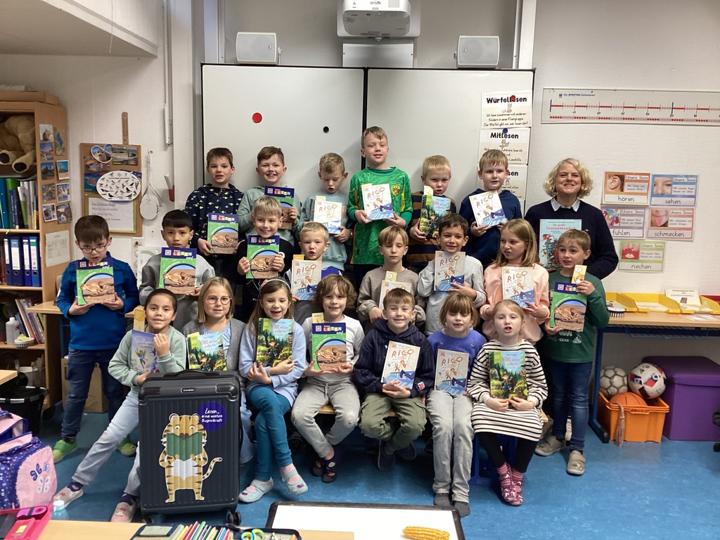 Vor den Ferien durften die Kinder aus einer Liste von fünf liebevoll ausgewählten Büchern ihren Favoriten auswählen und heute endlich mit nach Hause nehmen. Sogar ein Vorlesebuch für die Klassenlehrerin war dabei! Und die Lesezeichen durften natürlich auch nicht fehlen!